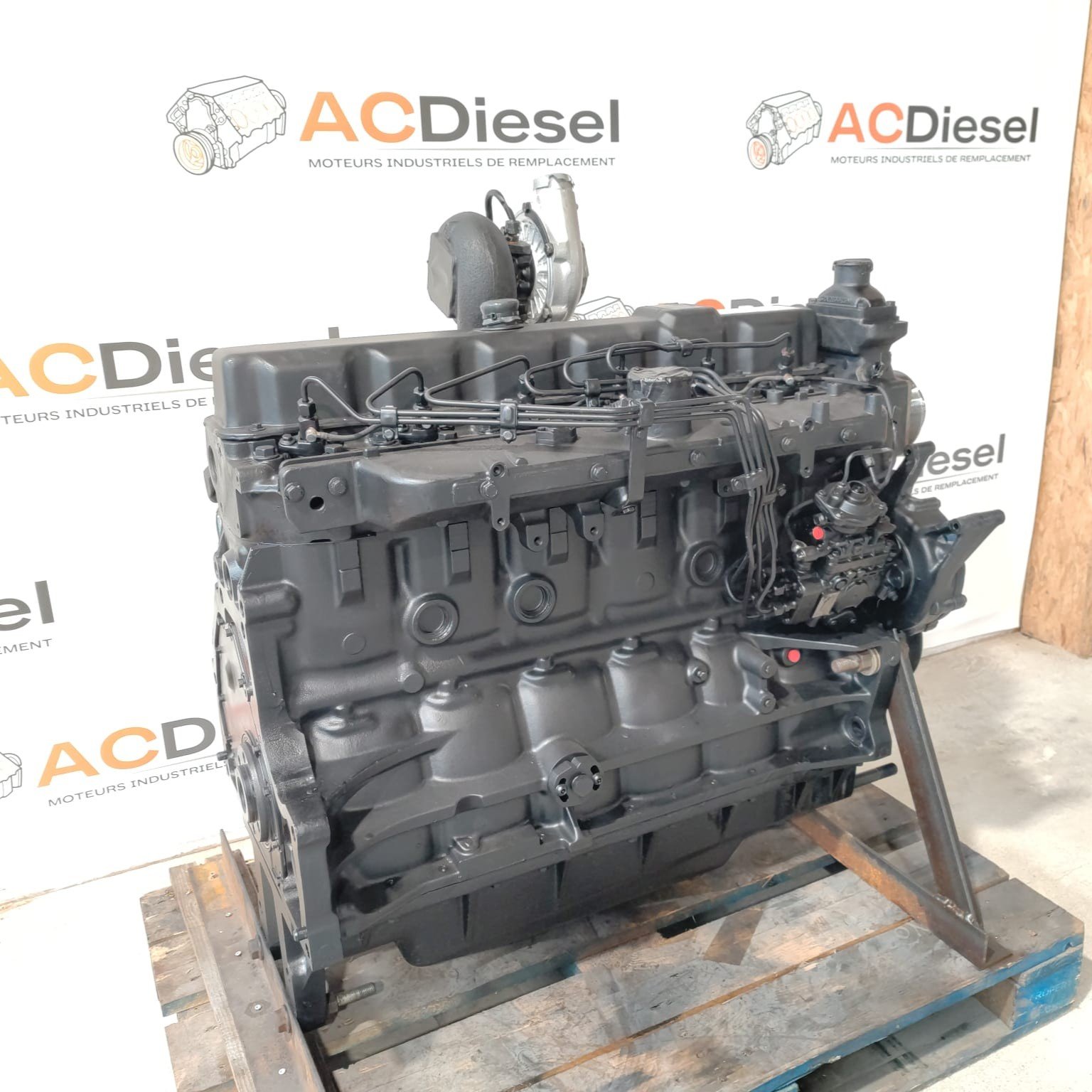 Moteur complet reconditionné avec bloc structurel. Configuration agricole, il peut être adapté sur des tracteurs Massey-Ferguson et Landini ainsi que sur des télescopiques Manitou et JCB, en envisageant un remplacement du turbo.